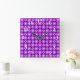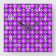 Magenta Pink Dots Black White Lattice Pattern Square Wall Clock
