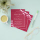 A magenta background, decorated with pink eucalyptus stems, sprigs. Personalize and add a name and party details.