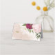 Beautiful wedding place card featuring magenta and pink flowers and green leaves