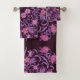 This bath towel set is a beautiful and colourful addition to any bathroom. The towels are a magenta pink purple colour and feature an artistic mandala design.The set includes one bath towel, one hand towels, and one washcloths.