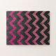 Magenta pink red ombre dark grey chevron pattern jigsaw puzzle