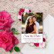 Magenta Pink Roses & Photo Wedding Save the Date Acrylic Invitations