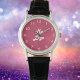 Add your own business logo. A trendy magneta, dark pink background. Perfect for promoting your business and your brand. White clock face numbers.