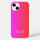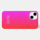 Trendy hot pink and coral gradient leather look texture (PRINTED, not real leather) iPhone 14 personalised with your name in chic calligraphy script. ++++++++++ Can be a unique custom gift for her on birthday, Sweet 16, Quinceanera, graduation or for Christmas.