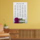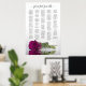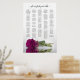 This gorgeous wedding seating chart features a photo of a long-stemmed magenta plum or berry purple colored rose lying on its side reflecting in a pool of water with waves and ripples. The title reads "please find your table" in elegant lacy script calligraphy. There is space for the up to 250 names with the names of the couple and wedding date below. Wonderful way to help your guests find their tables while making your reception more beautiful.