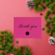 Featuring real gold foil for the elegant script "Thank you" text on the front on magenta pink. Show your gratitude to you clients and customer and keep your business top of mind. Customise the logo, message, website and business name.
