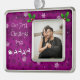 Celebrate the magic of the season with this Magenta Santa’s Sleigh and Reindeer Frame Photo Ornament, featuring Santa’s sleigh and flying reindeer gliding across a delicate snowflake background accented with festive holly berries. Your couple’s photo is beautifully framed with festive typography, creating a charming holiday photo keepsake perfect for commemorating our first Christmas. A delightful addition to your Christmas decor, this ornament captures the joy and wonder of the holidays.