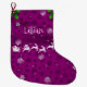 Add a whimsical touch to your mantle this holiday season with a personalised Magenta Santa's Sleigh and Reindeer Christmas Stocking. Stocking design features Santa's sleigh adorned with holly berries and pulled by his reindeer against a magenta background with falling snowflakes. Additional gift and holiday items available with this design as well.