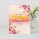 This design features a radiant watercolor wash in shades of sunset orange, yellow, and peach. Lush magenta anemones and warm orange florals adorn the corners, accented by soft taupe leaves. It creates a romantic and vibrant atmosphere perfect for a summer evening event. The painterly style provides an artistic and modern botanical aesthetic.
