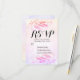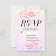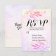 Wedding RSVP / Kindly Reply Card Templates - Vintage Soft Magenta Salmon Hot Pink Purple Watercolor Leaves and Handwritten Script on Watercolor Splash Background.