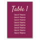 Magenta wedding reception table number. Personalise with the table number and each guest seated at that table. Design one for each table. Contact me for assistance with your customisations or to request additional matching or coordinating Zazzle products for your event(s).