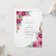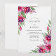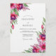 A vibrant display of magenta and deep purple blossoms cascades across this design, accented by delicate green foliage. The artistic floral arrangement evokes a sense of joyous celebration and natural beauty.