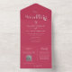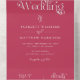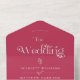 This ultra modern all in one wedding invitation uses a swirly retro font, bold serif lettering and bright backgrounds. This stationary is perfect for the modern wedding or event. It is guaranteed to stand out, just like you.