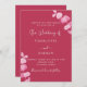 A magenta background, decorated with eucalyptus stems, sprigs. Personalise and andd your names and the details.