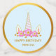 Beautiful magic Birthday unicorn table confetti in golden, yellow, pink and light turquoise colours decorated with flowers and gold confetti. Ideal for birthdays and any other magical celebration. All texts can be personalised for girls or boys.