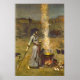 A vintage image of a witch in the act of thaumaturgy. She stands by a smoking brazier while completing the magic circle with her staff. From an original 19th century (1886) painting by John Waterhouse. All Rights Reserved © 2015 padre art