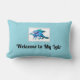 A bright blue dragon adds life to this adorable toss pillow - perfect for all ages and settings. Especially delightful for fans of witch movies and fantasy games! Pillow reads "Welcome to My Lair".