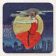 Magic Floating Woman Moon Night Sky Witch Square Paper Coaster