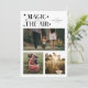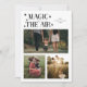 Elegant holiday card featuring a text that says "magic in the air" with 3 photos on the front. Add another photo on the back along with your message. Background is white.