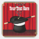 A graphic illustration of a magician’s hat with a red curtain background by artist/designer Charmaine Paulson on a custom sticker. The sticker has a text template for your personalisation. ©2013charmainepaulson