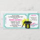 Magic Show Ticket style birthday party invitation in teal and white, accented in purple and pink or choose colours as preferred.. Customise text to fit your needs.