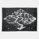 Magic mountain map, black and white drawing, surrounded by stars