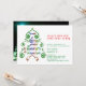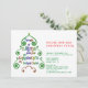 Invitation with the Magic of Christmas Typography in Holiday Tree Shape. Next to the tree, is the invitation information for you to change. The back of the Christmas invite card has a green winter tree scene. View all stores bit.ly/SandyspiderStores