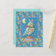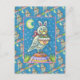 MAGIC OWL & EASTER BASKET, WHIMSICAL FOLK ART BIRD HOLIDAY POSTCARD