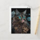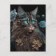 Magic steampunk Maine Coon cat and flowers AI art Postcard