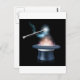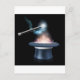 Magic trick hat and wand with magical blue light and stars around it being waved over a glowing magic top hat
