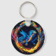 Magical Blue Dragon Surrounded by Mystical Flames Key Ring