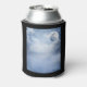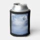 Can cooler with a magical fantasy sky with fluffy blue clouds and a big beautiful moon. 2 white swans flying off together.