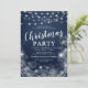 Invoke the magic of the holiday season right from the start with our enchanting Christmas party invitations. Set against a mesmerising dark blue backdrop, the winter snowflakes and twinkling string lights evoke a dreamy landscape that's just too beautiful to ignore. What's more? Personalising your xmas party details is a breeze with our easy-to-use template. So why wait? Let your party be the talk of the town this Christmas!