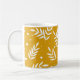 A magical simple pattern with branches on yellow background. Minimalist botanical illustration on mugs.