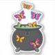 An illustration of magical colourful butterflies coming from a black cauldron. Witches use cauldrons for making their spells to perform witchcraft. This design is a good gift idea for girly, butterfly lovers and Halloween lovers.