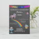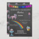 Fun customisable unicorn themed arty invitation chalkboard back ground