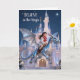 This greeting card features a magical winter illustration of a young girl riding a sparkly(in printed colors, no glitter) dragon through a snowy night sky around a castle, capturing the sense of wonder and possibility that defines the holiday season. The storybook-style artwork is designed to delight children and teens while remaining warm and gift-appropriate for family giving.