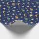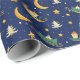 Whimsical Christmas night seamless pattern featuring Santa’s sleigh, glowing crescent moons, twinkling stars, and snowy pine trees on a deep navy blue background. Perfect for wrapping paper, fabric, and holiday décor with a dreamy festive charm.