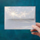 The Christmas season - a time full of wonder, joy, hope, expectations and surprises. This envelope features an golden snowflakes swirl in the blue night sky above the winter forest. Beautiful envelop for your Christmas greetings!