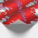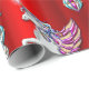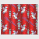 A pretty, fantasy Christmas wrapping paper in red, featuring a lovely pattern of colourful unicorns with shiny, pink and gold wings, gold horns with sparkles on the tips of them, purple and blue manes and tails, gold hooves and sparkles on their chests. There are also colourful (faux) metal Christmas ornaments hanging down and they're all wishing you a very Magical Christmas in sparkling, rainbow letters. This pretty red unicorn Christmas wrap would be most suitable for people who love unicorns or for anyone else who loves fantasy creatures and Christmas.