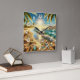A beautiful magical coastline clock. Pretty shoreline with ocean waves, palm trees, shells, starfish and sea glass.