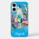 This magical dreamcatcher iPhone case features a large tear-shaped crystal with delicate flowers, foliage and hanging gems on an aqua blue background. Personalised with your name. Background colour or font can be changed by using the edit button. Makes a great gift for birthdays, graduation or Christmas!