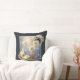 This pillow design feature whimsical butterflies, with floral adornments, flitting around a frame of gorgeous puffy dandelion seed pods. The dandelions have an ethereal watercolor effect with dots of blue and gold stars. They're all framed in a gold colour, set against a grayish black background. This stylish, shabby chic design is great for both elegant and boho home decor themes, and throw pillows are an econimcal way to spruce up any decor without buying new furniture.