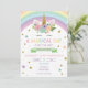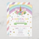 This is a unicorn and rainbow themed birthday party invitation.