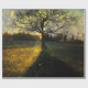 Digital composition of many personal photographs creating a magical dreamy scenery of fireflies around tree with shining light.