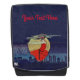 This Bold Face adult backpack with a interchangeable front face has a magical woman with star dust coming from her finger tips and wearing a red dress floating over a night time city skyline in front of a full yellow moon with mysterious grey clouds. Customise your text with the template.