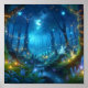 A magical forest at twilight with glowing fireflies and mystical creatures.