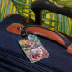 I was happy with the acrylic tag but it came with a thin leather strap to attach the tag to luggage (like a cat collar). I replaced the strap with a metal ring off of a key ring as the leather strap would come undone or break easily as luggage is sometimes handled without much care by airlines. Printing is great. Colours and positioning of the design I put on the tag were perfect. Very pleased.
