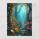 Magical Forest Pathway with Whimsical Wildflowers Postcard