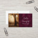 Business cards with a whimsical enchanting illustration in rich brown and yellow colours. A magical mystical forest with a large tree holding an old fashioned lantern. Fairy lights dancing all around. An enchanting wonderous design.